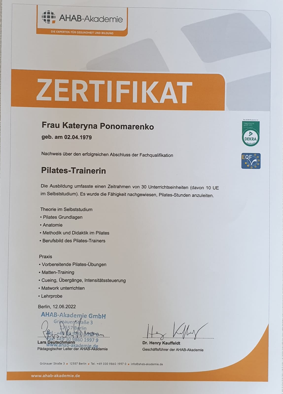 Pilates Trainerin / Personal Trainerin